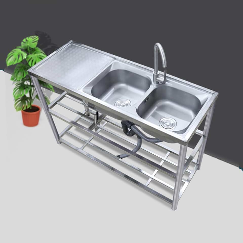 2 Compartment Commercial Kitchen Sink Set Double Basin Sink Freestanding Stainless Steel Sink Easy to Clean Silver for Laundry Backyard Garage (Size : 120 * 45 * 80cm, Color : Right)