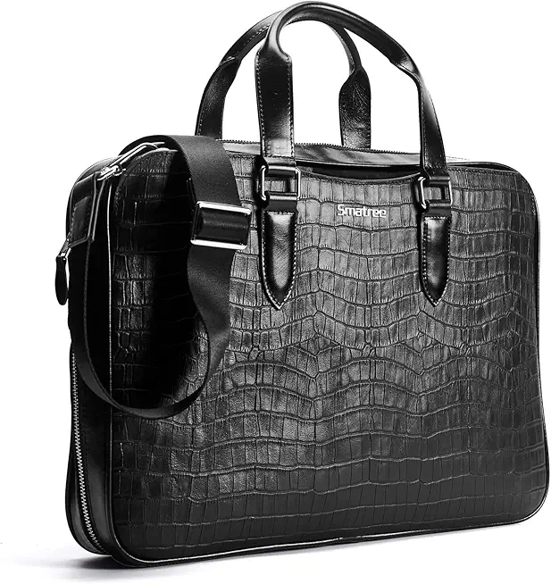 Mens Full Grain Leather Briefcase, Handcrafted Leather Bag for Men, Business Shoulder Bag Fit with 13-15.6inch Laptop