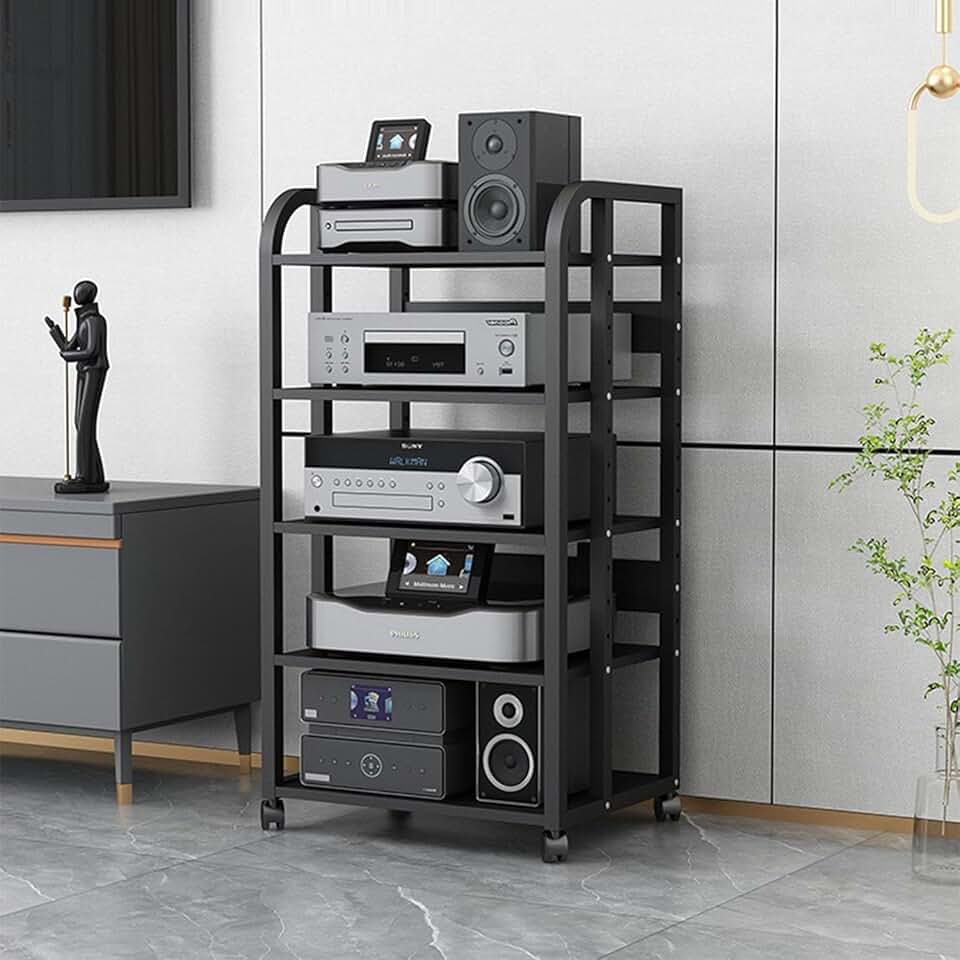 5-Tier AV Media Stand, Corner TV Entertainment Center Stereo Components Storage Cabinet, Movable Audio Rack Tower Player Stand for Living, Gaming, Recording Room
