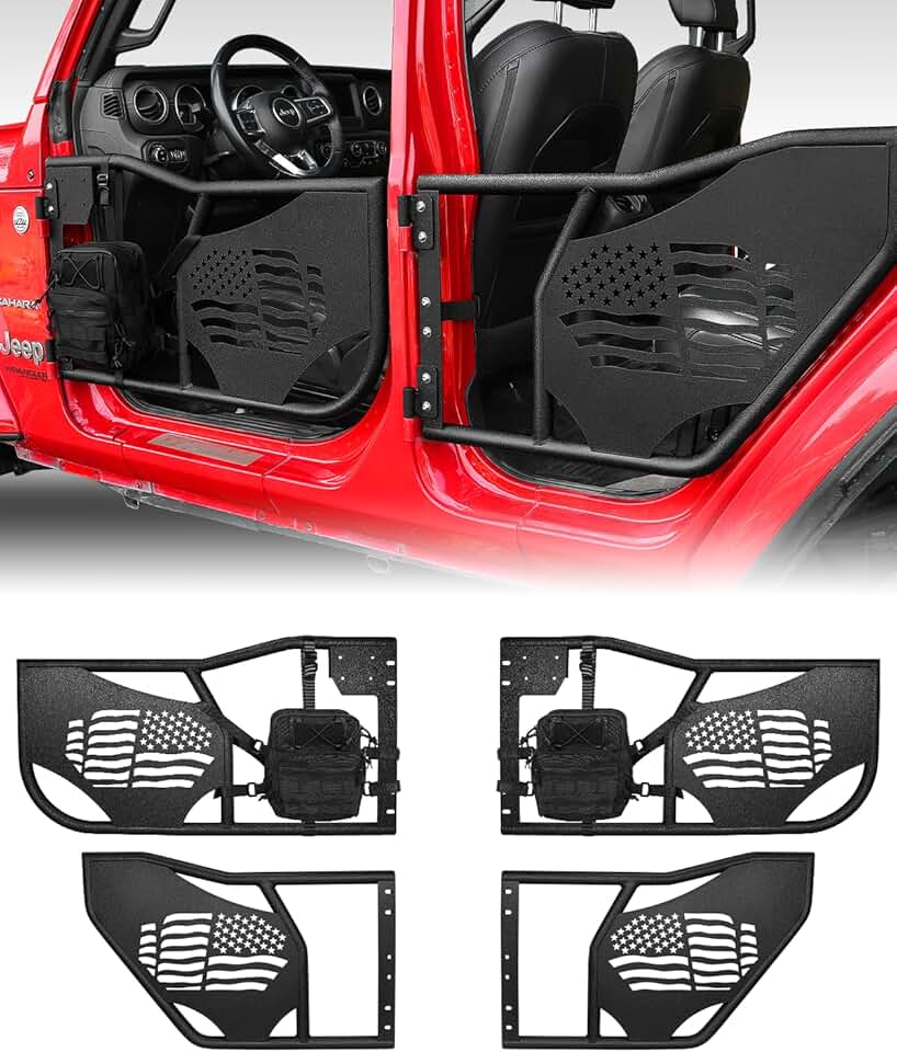 ROADER JL Gladiator Tube Doors for 2018-2023 Jeep Wrangler JL Unlimited | Gladiator JT 4-Door US Flag pattern Front & Rear Tubular Half Doors Adventure With Offroad Front Door Side Storage Bag