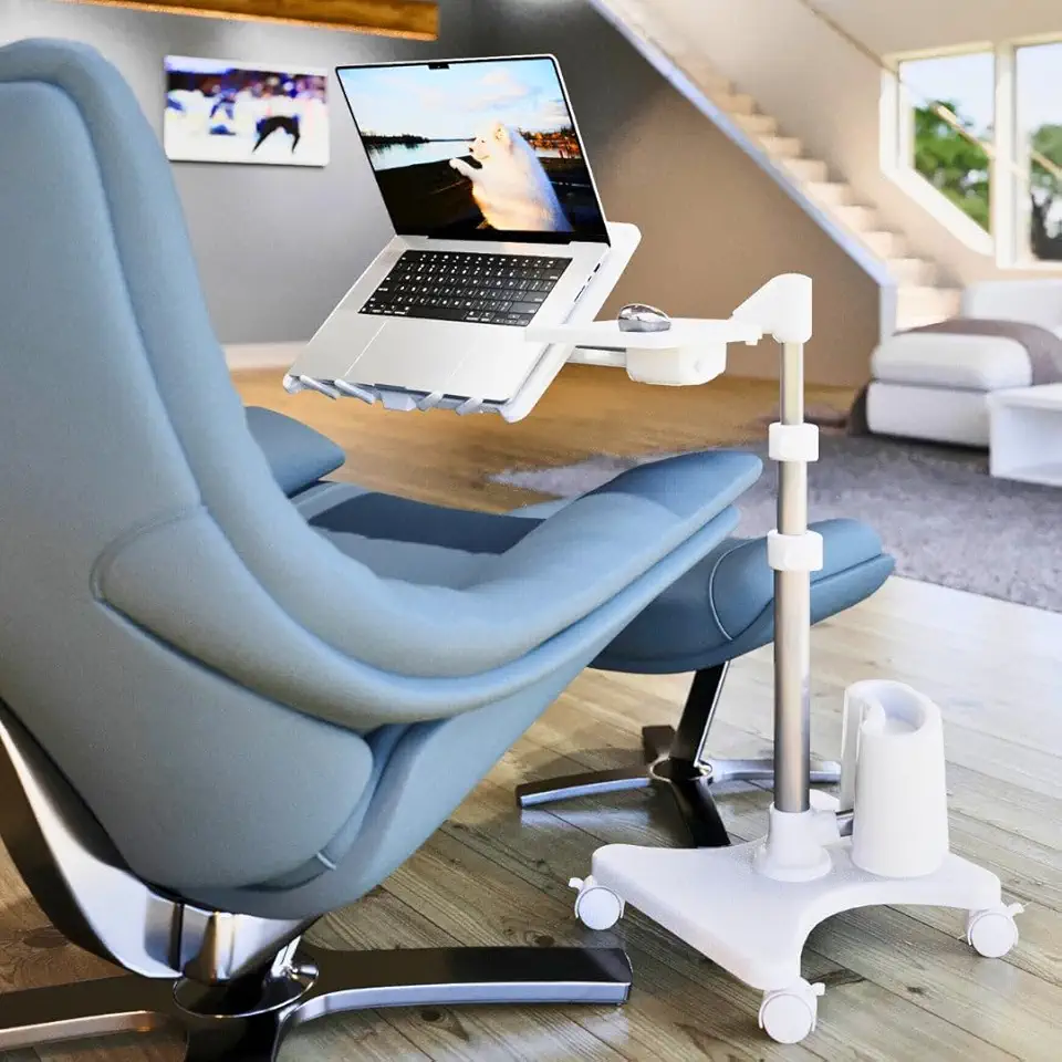 G2-801 Deluxe Rolling Laptop Stand with Mouse Tray - Silver & White - Ergonomic Design for Comfortable Work - Portable and Adjustable Laptop Cart - Ideal for Home or Office Use