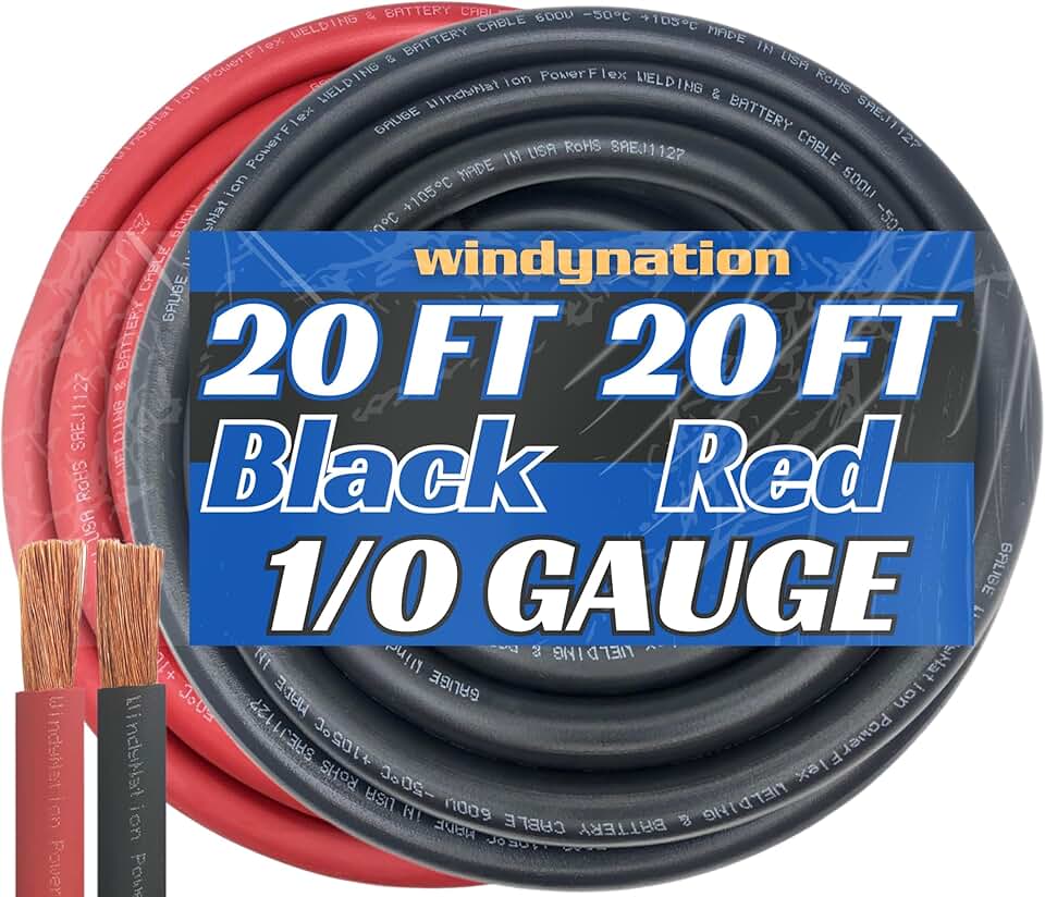 1/0 Gauge 1/0 AWG 20 Feet Black + 20 Feet Red Welding Battery Pure Copper Flexible Cable Wire - Car, Inverter, RV, Solar