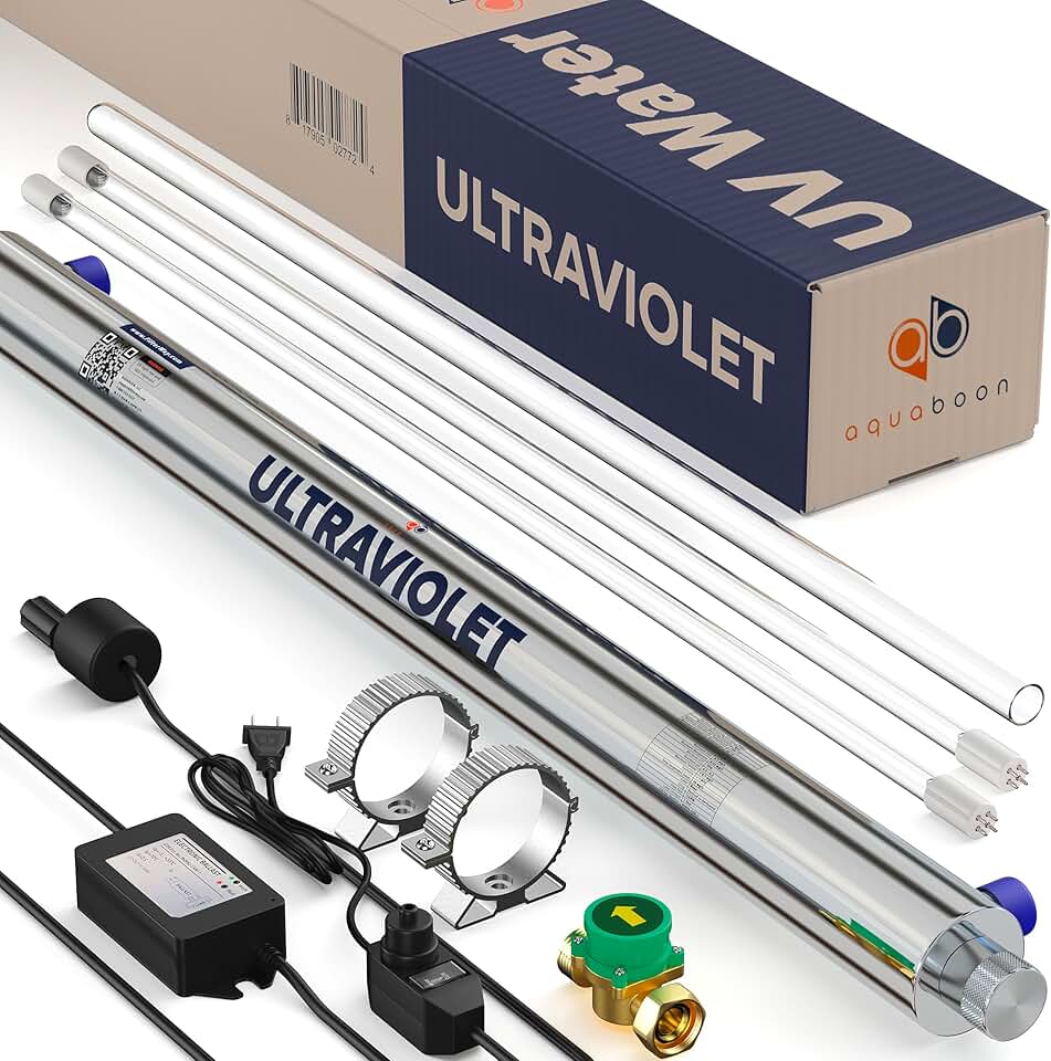UV Water Purification System 55W, 12 GPM - UV Water Filter with Smart Flow Sensor Switch - Whole House UV Water Purifier Ensuring Water Purity - UV Light for Well & City Water + 1 Extra Lamp