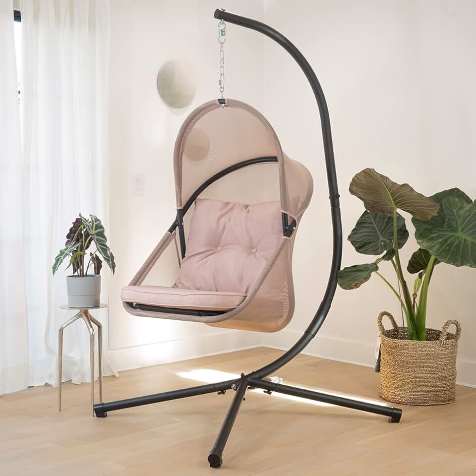 Barton Hanging Chair Egg Chair Cushion w/Canopy Indoor/Outdoor Basket Lounge Seat Collapsible Egg Chair, Beige