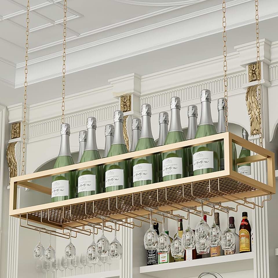 Ceiling Hanging Bar Unit Bar Wine Rack Restaurant Hanging Metal Floating Organizer Shelves, Ceiling Adjustable Height Wine Bottle Racks for Under Cabinet Kitchens Decoration Shelf,