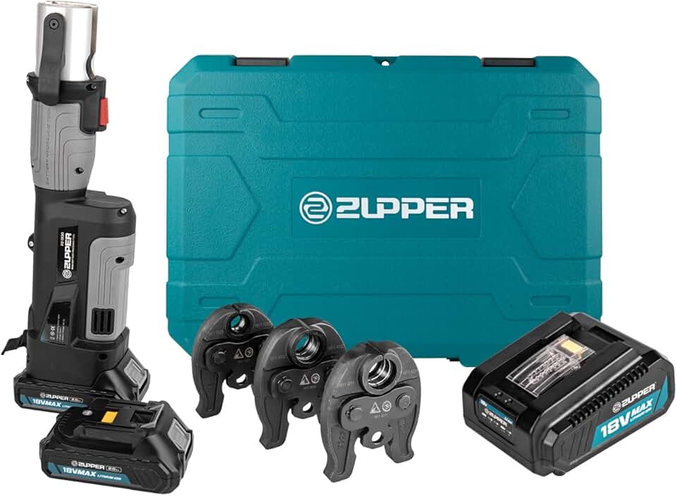 Mini Pro Press Tool kit with 1/2", 3/4", 1" Pro Press Jaws for Copper Viega, 2pcs Battery, Fast Charger & Carrying Case