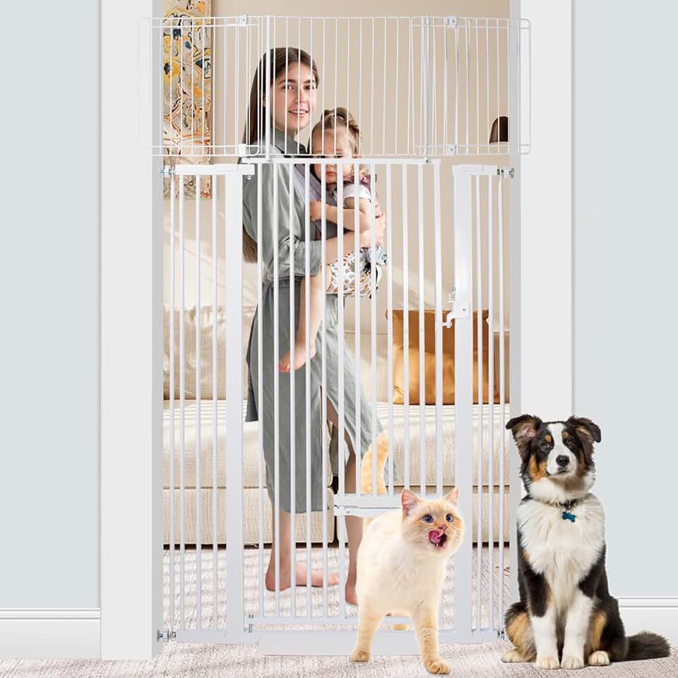 71 Inch Extra Tall Pet Gate Baby Gate with Small Cat Door, Adjustable 29.55" and -40.5", Dog Gate Pet Gate Easy Walk Thru Pet Door for Stairs, Doorway, House