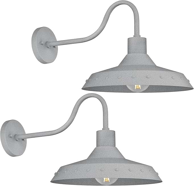 Barn Lights Outdoor 2 Pack, HWH 16'' Gooseneck Barn Light Fixture, Outdoor Barn Lights Exterior Wall Sconce Lantern for Porch Patio, Grey Finish, 5HJX101B-2PK Grey