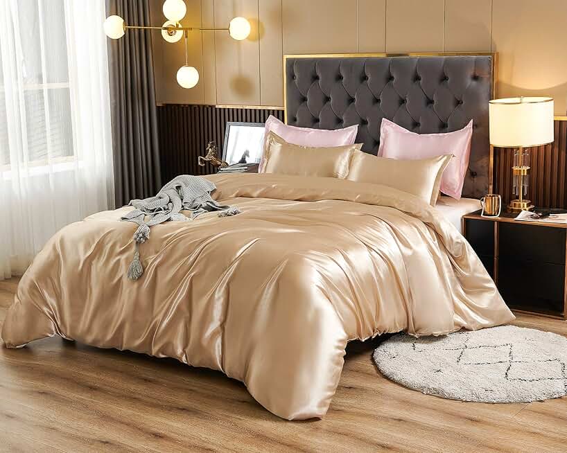 100% Mulberry Silk Sheet Set - 30 Momme, 16-18 Inch Deep Pocket, Luxurious Bed Sheets for Ultimate Comfort,King-Beige