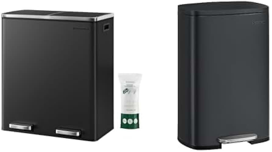 SONGMICS 2 x 8-Gallon Trash Can for Kitchen with 15 Trash Bags Black 13 Gallon Kitchen Trash Can, Stainless Steel Waste Bin, Soft Close, Black ULTB60BK and ULTB050B01