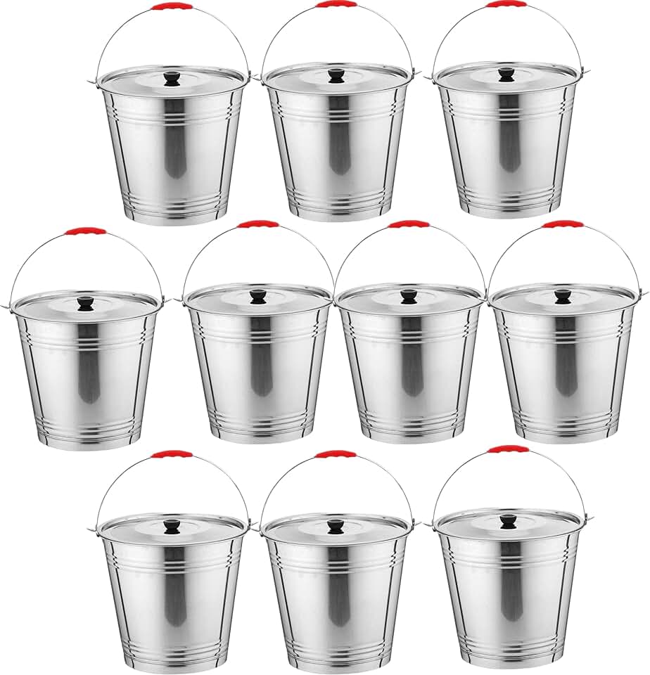 Skywin Metal Can with Lid - Durable 4 Gallon Metal Bucket with Lid for Heavy Loads - Environment-Friendly Metal Trash Can with Lid Outdoor, Safe Alternative to Plastic (10 Pack)