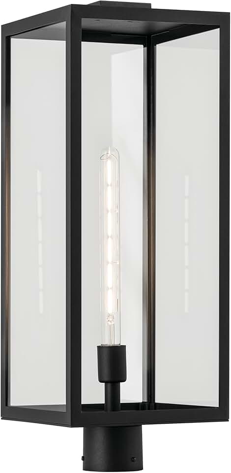 Kichler Mathus 1-Light Textured Black Luxe Updated Traditional Outdoor Wall Light with Clear Glass for Outdoor Walls, Exterior Doors, Garage, Porch or Patio Walls, 18"