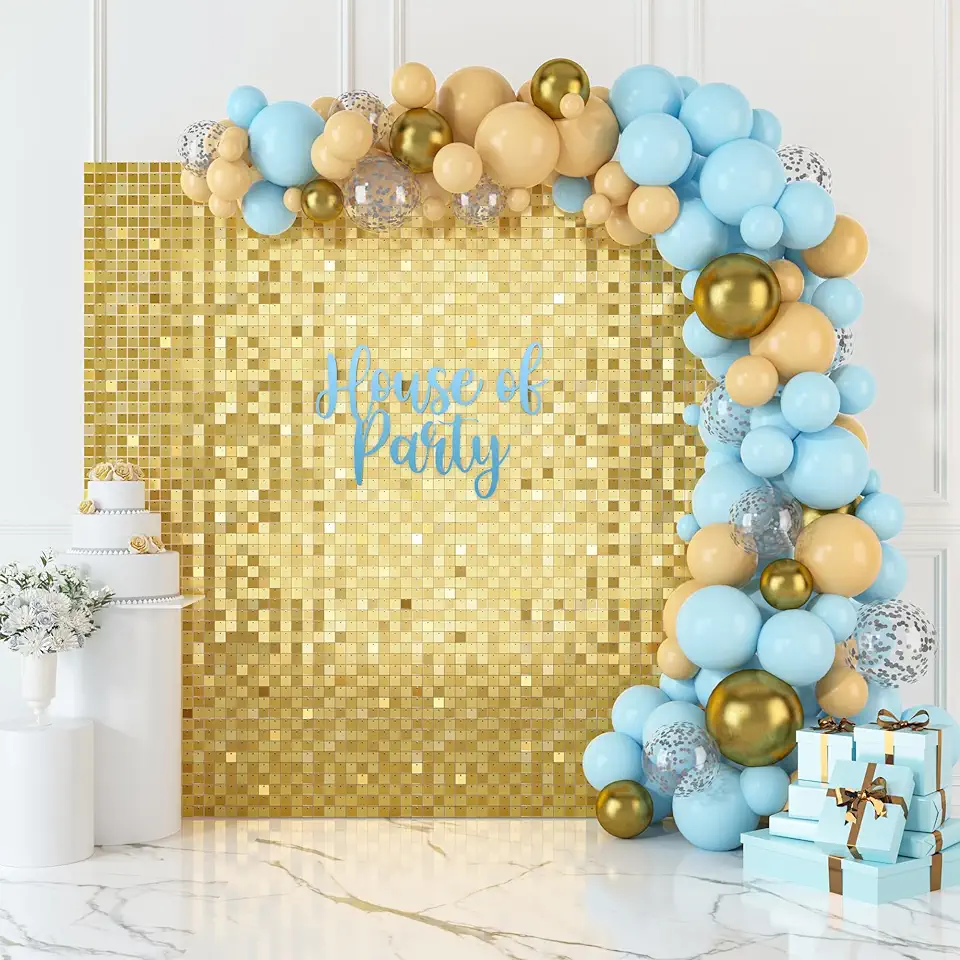 HOUSE OF PARTY Shimmer Wall Backdrop | Square 36 Panel Sequin Backdrop | Gold Shimmer Wall Backdrop for Indoor or Outdoor | Shimmer Backdrop for Wedding & Bachelorette Party Supplies