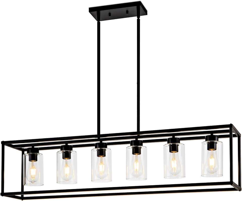 6 Light Dining Room Light Fixture Black Farmhouse Chandelier Kitchen Island Pendant Lighting Rectangle Modern Industrial Living Room Hanging Lights Adjustable Height