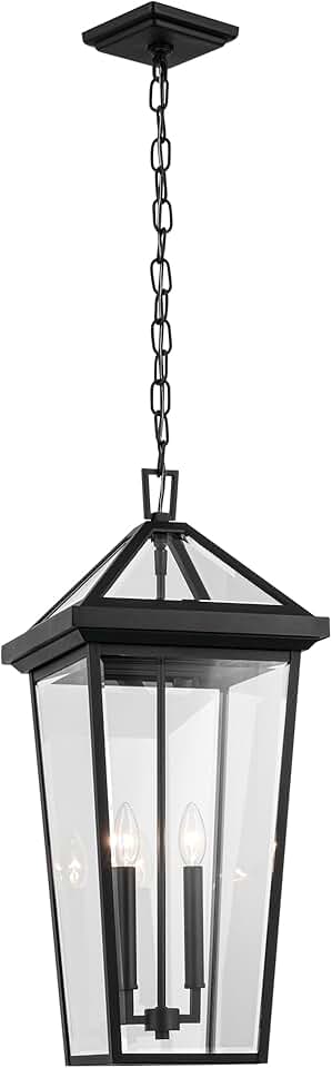 Kichler Regence 2-Light Textured Black Luxe Updated Traditional Outdoor Pendant with Clear Glass for Outdoor Walls, Exterior Doors, Garage, Porch or Patio Walls
