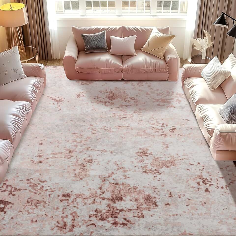 Baauye Washable Rug, Ultra Soft Area Rug 9x12, Non Slip Abstract Rug Foldable, Stain Resistant Rugs for Living Room Bedroom, Modern Fuzzy Rug(Pink, 9'x12')