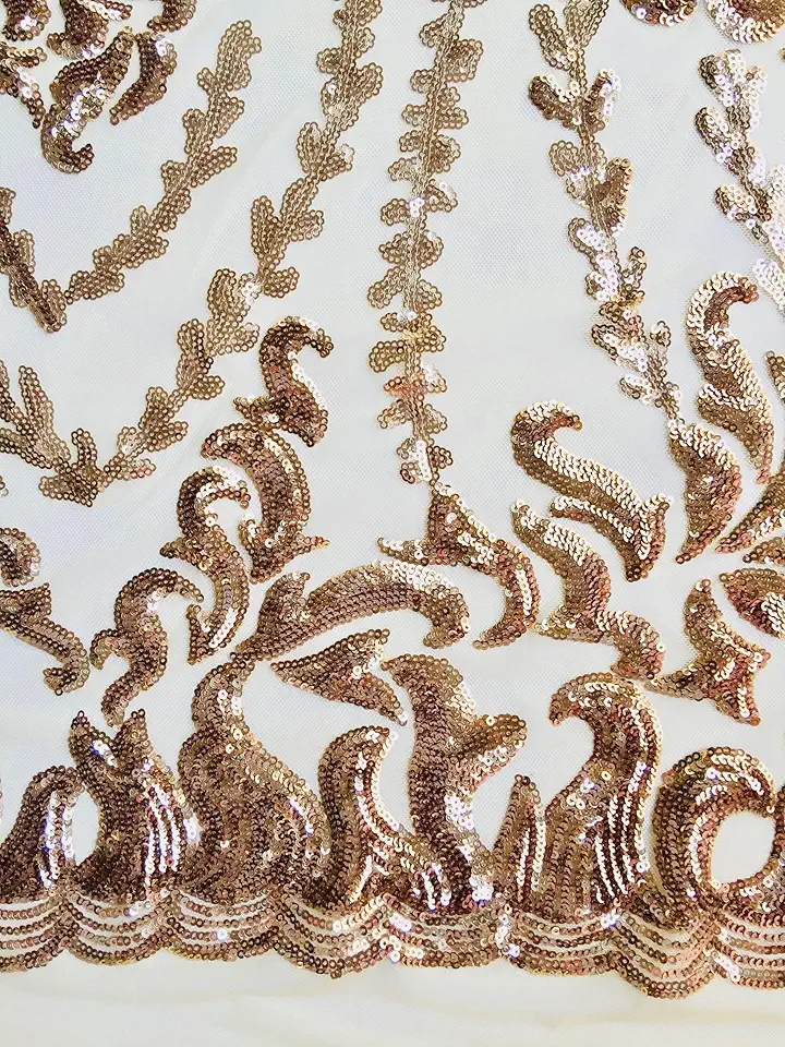 Miranda Gold Vines and Leaves Sequins on Yellow Mesh Lace Fabric by The Yard - 10061