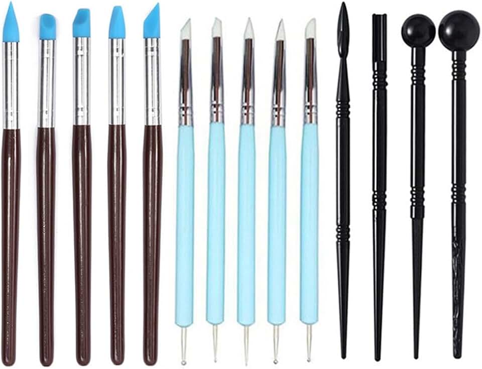 yghlh Pottery Tools 14 Sets of Stone Plastic Clay Silicone Spot Drill Pen Indentation Black Stick Silicone Pen Modeling Tools