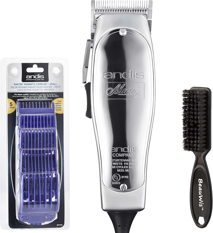 Andis Master Hair Adjustable Blade Clipper, with a Andis Master Dual Magnet 5-Comb Set with a BeauWis Blade Brush