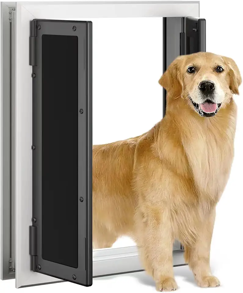 Dog Door, Doggy Door with Double Panels, Doggie Door with Automatic Closing Panels for Energy Efficient, Dog Doors for Large Dogs with Telescoping Tunnel & Aluminum Frame, Closing Panel Included