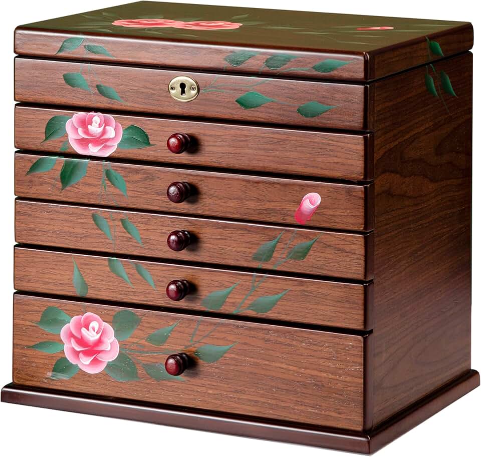 jewelry boxes & organizers for women,6-Layer Hand-Paint jewelry holder organizer with necklace hanger, Vintage jewelry armoire, storing necklaces, rings,jewelry boxes for women