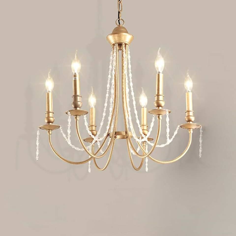 Gold Crystal Chandelier Modern Chandeliers Retro Candlestick Chandelier Lighting 6-Light Fixture for Dining Living Room, Foyer, Entryway and Bedroom
