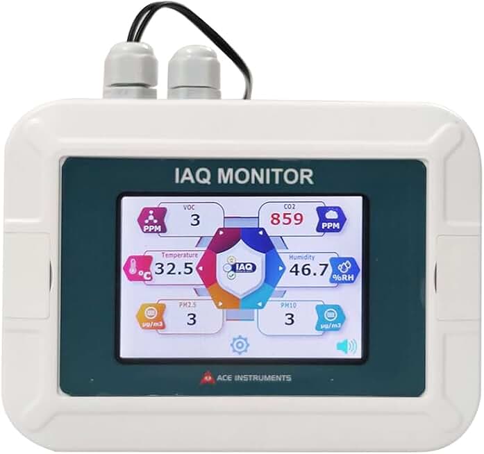 6 in 1 Indoor Air Quality Monitor Touch Screen TFT Display CO2| VOC | PM2.5 | PM10 | Temp | RH for Hospital and Medical Facilities, Office Buildings, Home, Industrial Buildings, Model: AI-IAQ6-PH