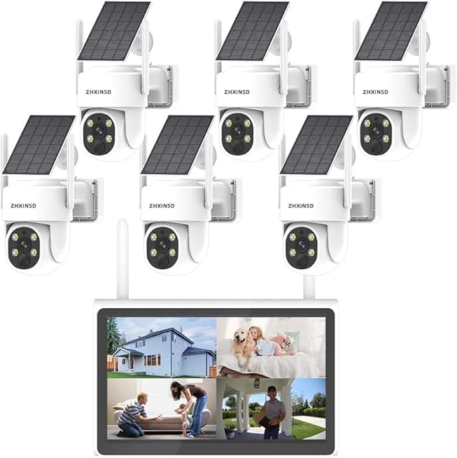 PTZ Security Cameras Wireless Outdoor Solar Powered with 10 inch Monitor, 10 CH 2K Wirefree Security Camera System with 6 Cameras Pan Tile 360 View Two Way Audio Colar Night Vision 64G Storage