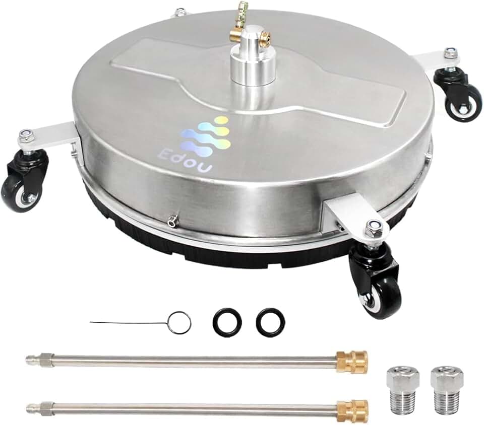 EDOU Direct Pressure Washer Surface Cleaner 18" | 2 Replaceable Nozzles & 4 Wheels | Stainless Steel | Heavy Duty | 4,000 PSI Max Working Pressure | with 2 Pressure Washer Extension Wand Attachments