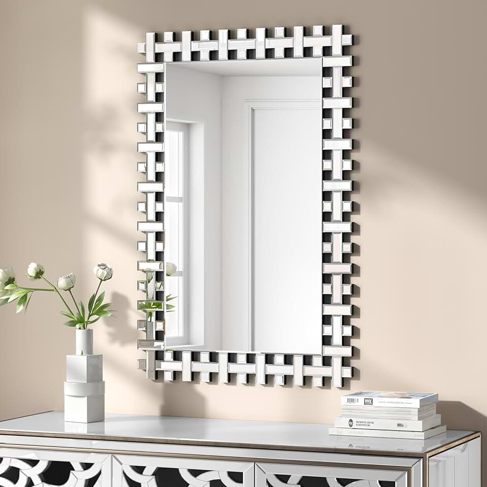 Rectangle Decorative Wall Mirror 36”×24” Silver Accent Mirror for Living Room Wall Decor Ding Room