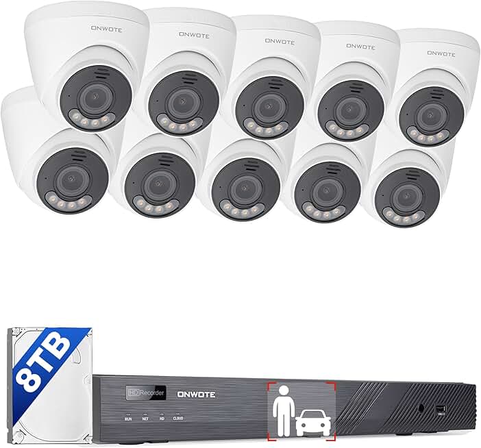 ONWOTE 12MP Security Camera System PoE 8TB HDD, 4000x3000 12 Million Pixels @30fps, 2 Way Talk, Smart Color Night, 10x Outdoor 12MP PoE IP Cameras with IMX577 Image Sensor, 16CH 6K Commercial NVR