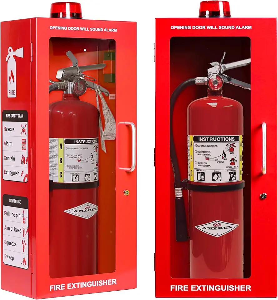 Fire Extinguisher Cabinet | Wall & Surface Mount | Holds 2.5 Pound, 5 lb or 10 lb Extinguishers | Optional Alarm & Lock | Fire Safety Instructions Included (Red, Metal)