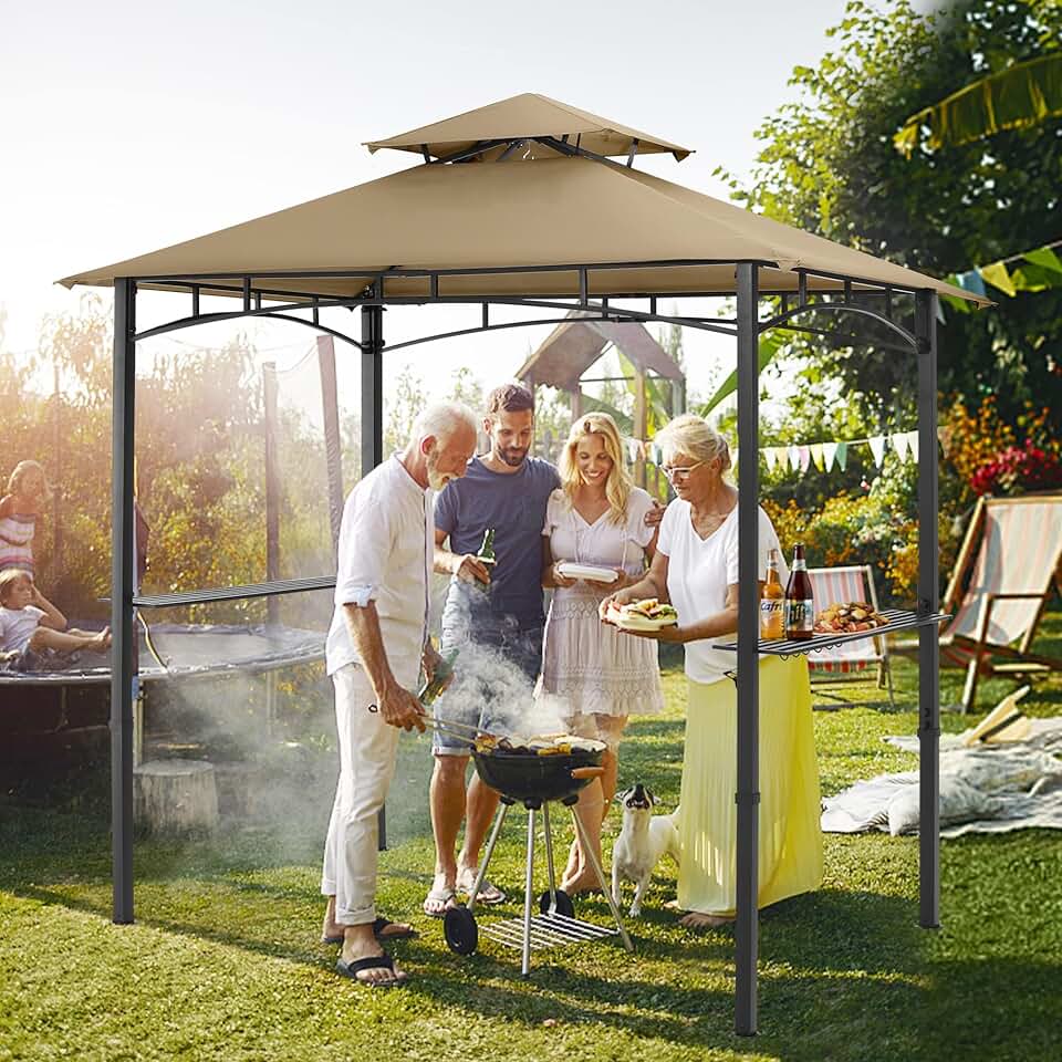 Grill BBQ Gazebo Canopy for Outdoor Grill, 8x5 Outdoor Patio Grilling Gazebo with LED Light for Backyard and Deck by OUTDOOR WIND, Khaki