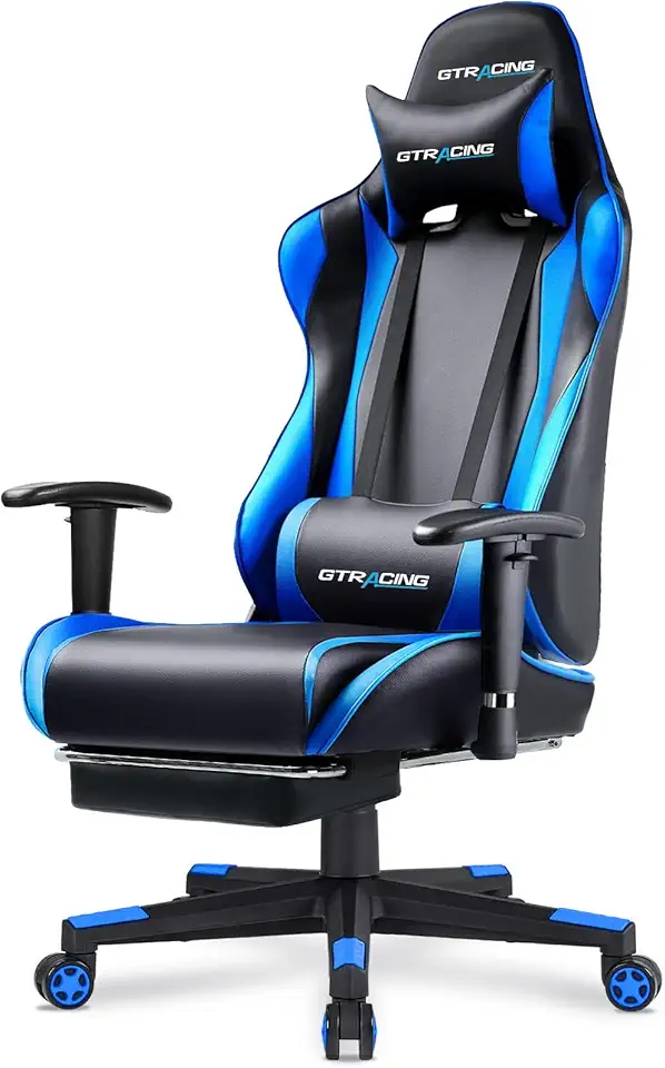GTRACING Gaming Chair with Footrest, Ergonomic Computer Game Desk, Reclining Gamer Chair Seat Height Adjustment, Swivel Rocker with Headrest and Lumbar (Blue)