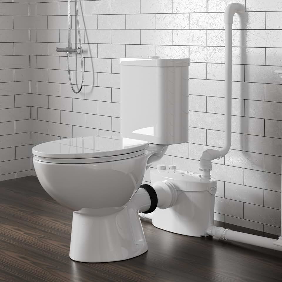 Simple Project 600w Macerating Toilet System, Silent & Powerful Upflush Toilet For Basement, Upflow Toilet Included Macerator Pump, With Ac Vent & 4 Water Inltes For Bathroom- 2-piece Kit