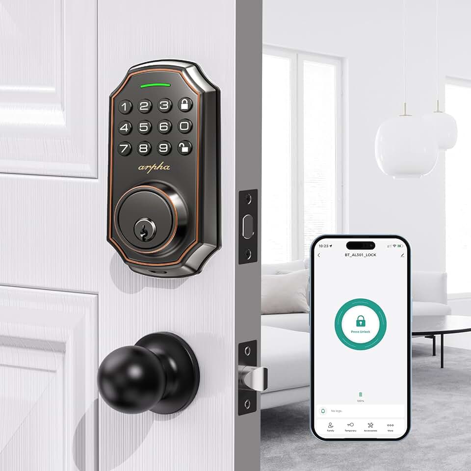 Keyless Entry Door Lock with Knob Set - Smart Deadbolt Lock for Front Door with Keypad - Anti-Peeping Password - One Touch Locking - Easy Installation - Matte Black