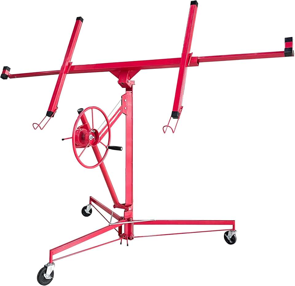 Elevon QD-ELGG-DL-RD 11FT Panel Hoist Jack Lifter, 150LBS Heavy Duty Sheetrock, Rolling Caster Wheels, Lockable Construction Tools, Adjustable Telescopic Arm, Red Drywall Lift