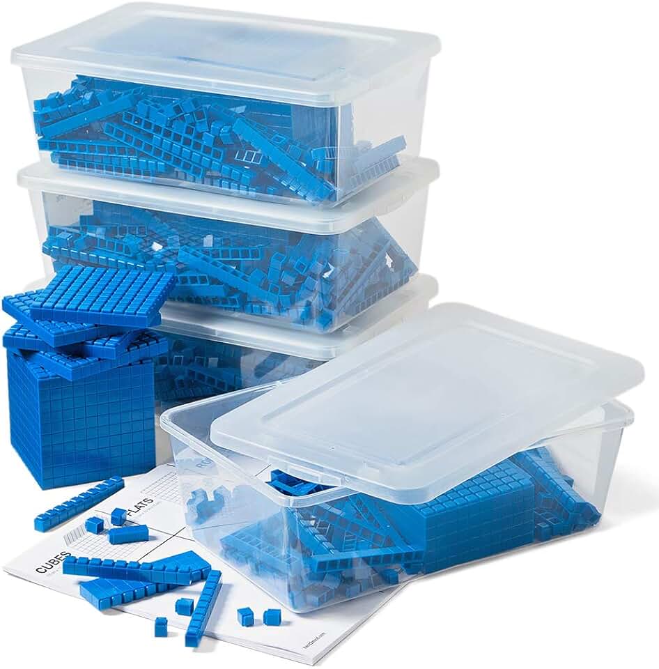 hand2mind Blue Plastic Interlox Connecting Base Ten Blocks Complete Set, Place Value Blocks, Counting Cubes, Base Ten Blocks Classroom Set, Base 10 Math Manipulatives Kindergarten (Set of 644)