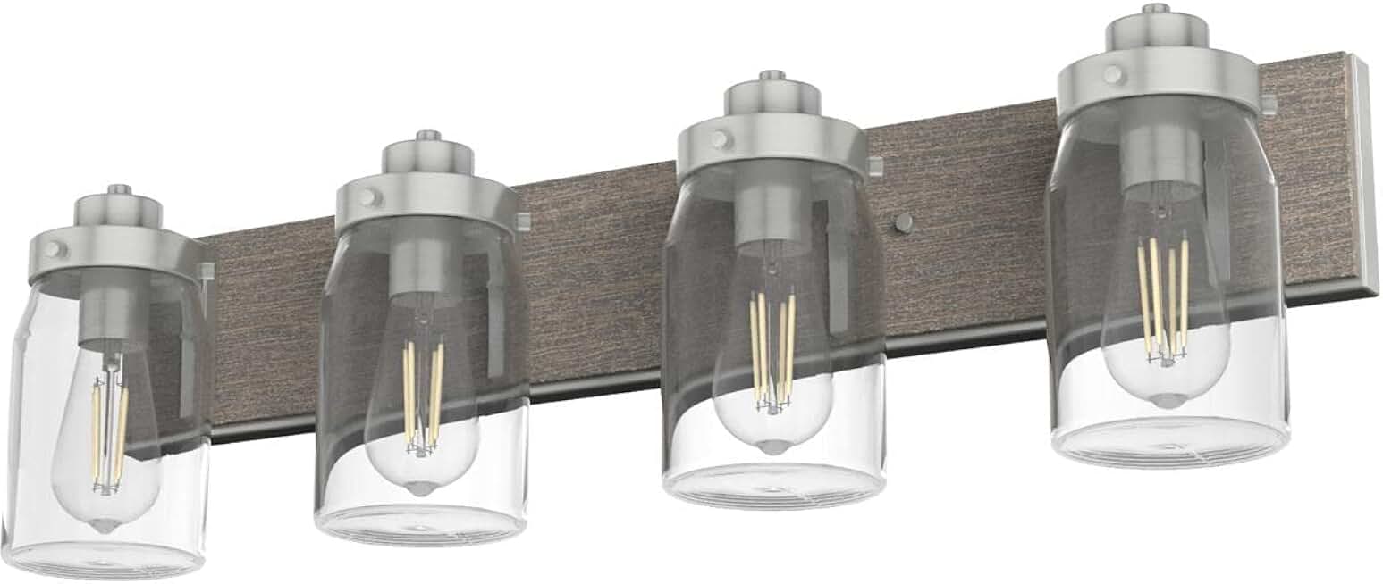 Hunter - Devon Park 4-light Brushed Nickel, Medium Size Vanity Light, Dimmable, Rustic Style, for Bedrooms, Kitchens, Foyers, Bathrooms - 48022