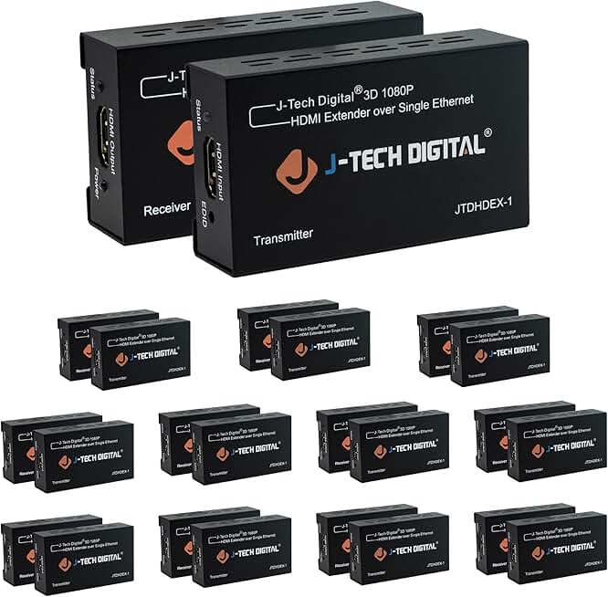 HDMI Extender 1080P 60Hz Over Single CAT 5e/6 Up to 200ft. | Deep Color, EDID Copy, Zero Signal Loss | Pack of 12 by J-Tech Digital [JTDHDEX-1]