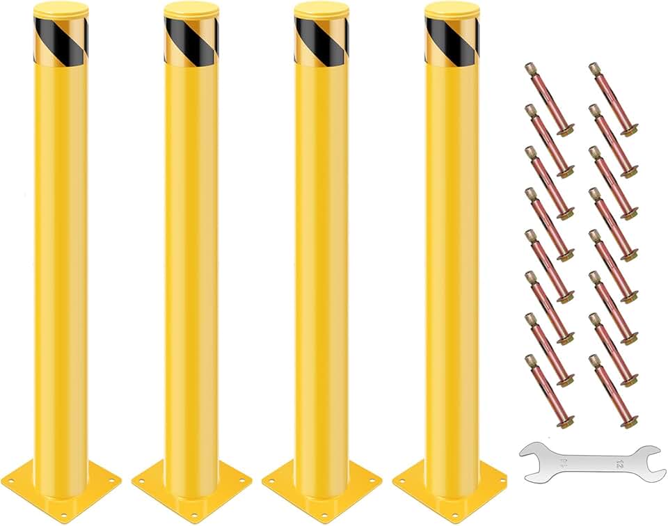 GARVEE Safety Bollard Post, 36 x 4.5 inch Steel Removable Traffic Parking Barrier Bollards, Yellow, 4 Pack