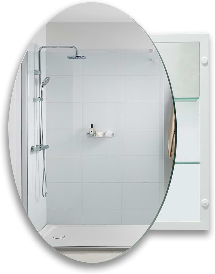Round Bathroom Medicine Cabinet, 30 Inches Frameless Circle Mirror Cabinet Wall Mounted Cabinet with Surface Mount Installation