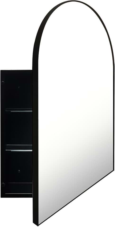 Arched Medicine Cabinet with Mirror,Surface Mounted Farmhouse Bathroom Medicine cabinets with 20 ×30 inch Bathroom Vanity Mirror (Black, Mirror:20"x30")