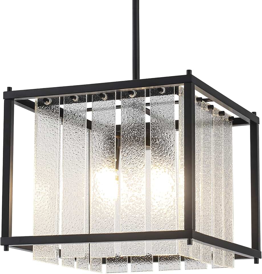 Crystal Chandelier Pendant Lights 4Lights, Modern Black and Crystal Pendant Lighting Fixture Chandelier Hanging Light for Dining Room Living Room E12