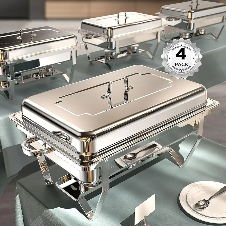 Chafing Dishes for Buffet 4 Pack, 9QT [No Fingers Cut] Roll Edge Designed Chafing Dish Buffet Set [Mirror-Like Polished Finish] Food Warmers for Parties, Birthday, Holiday Parties, Church Events, etc