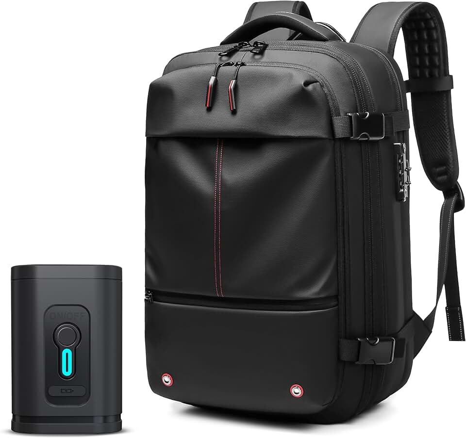 Laptop Travel Backpack Expandable With Vacuum Compression And Pump, Airback Personal Item Carry On Bag with Anti Theft Lock, Water Resistant, Flight Approved 17 Inch Laptop, for Men and Women