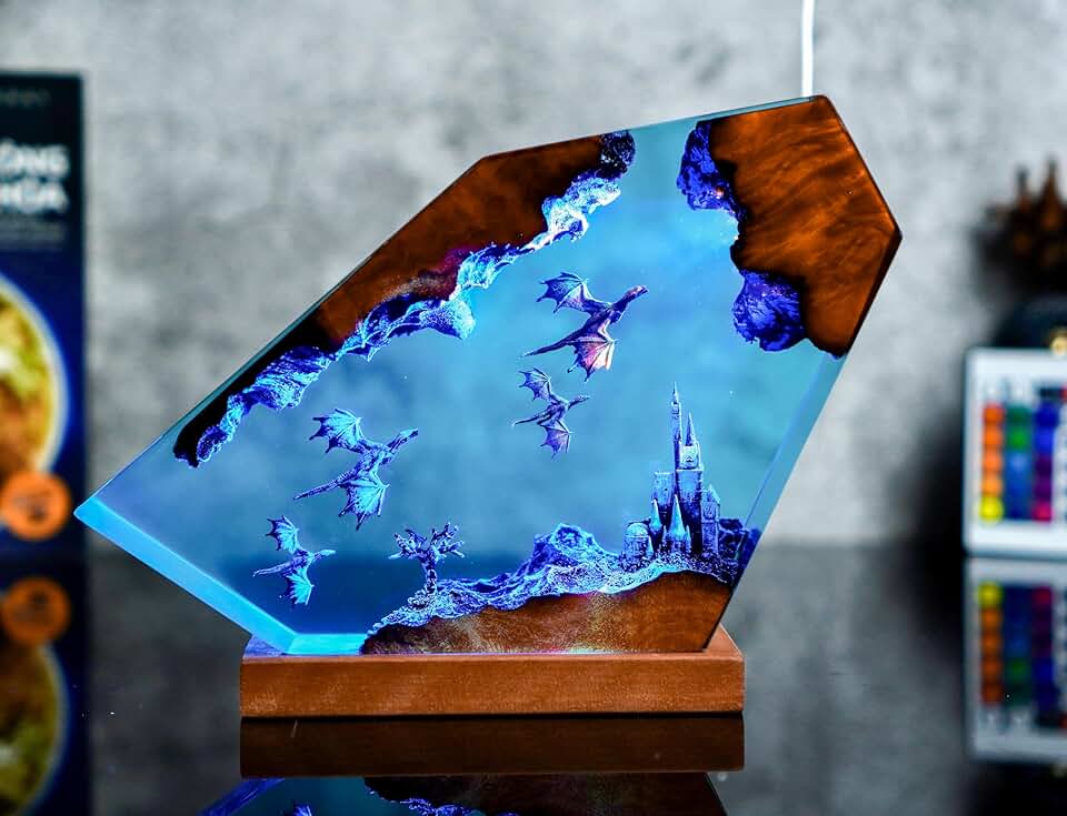 Fire Dragon and Ice Dragon Resin Lamp, Dragon Resin Night Light, 3D Dragon Night Light, Lighting Home decor, Gift anniversary, Gift for Him, Gift for Her (Size XL (19,8 * 25,4) cm)