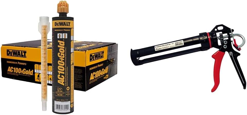 10 oz. Dewalt AC100+ Gold Quik-Shot Acrylic Epoxy Adhesive (Case of 12) and Red Devil 3989 9" Extreme Duty Caulk Gun