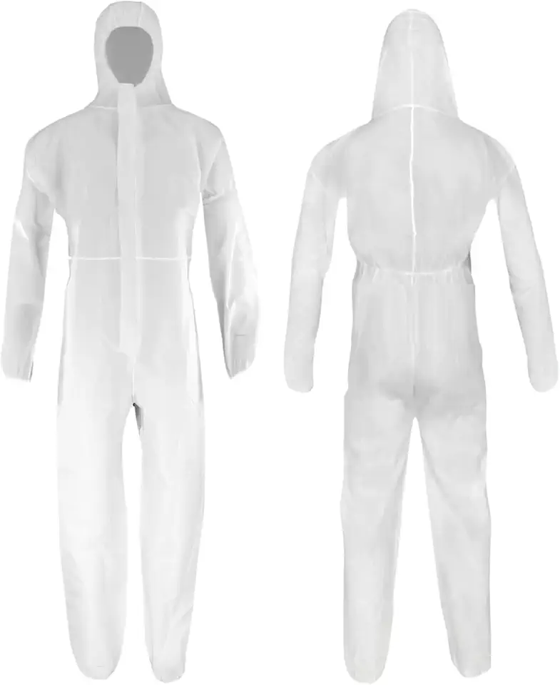 Disposable Coveralls with Hood (50 Pack) | Type 4 Microporous 55 GSM | Protective Liquid Proof Suit with Zipper