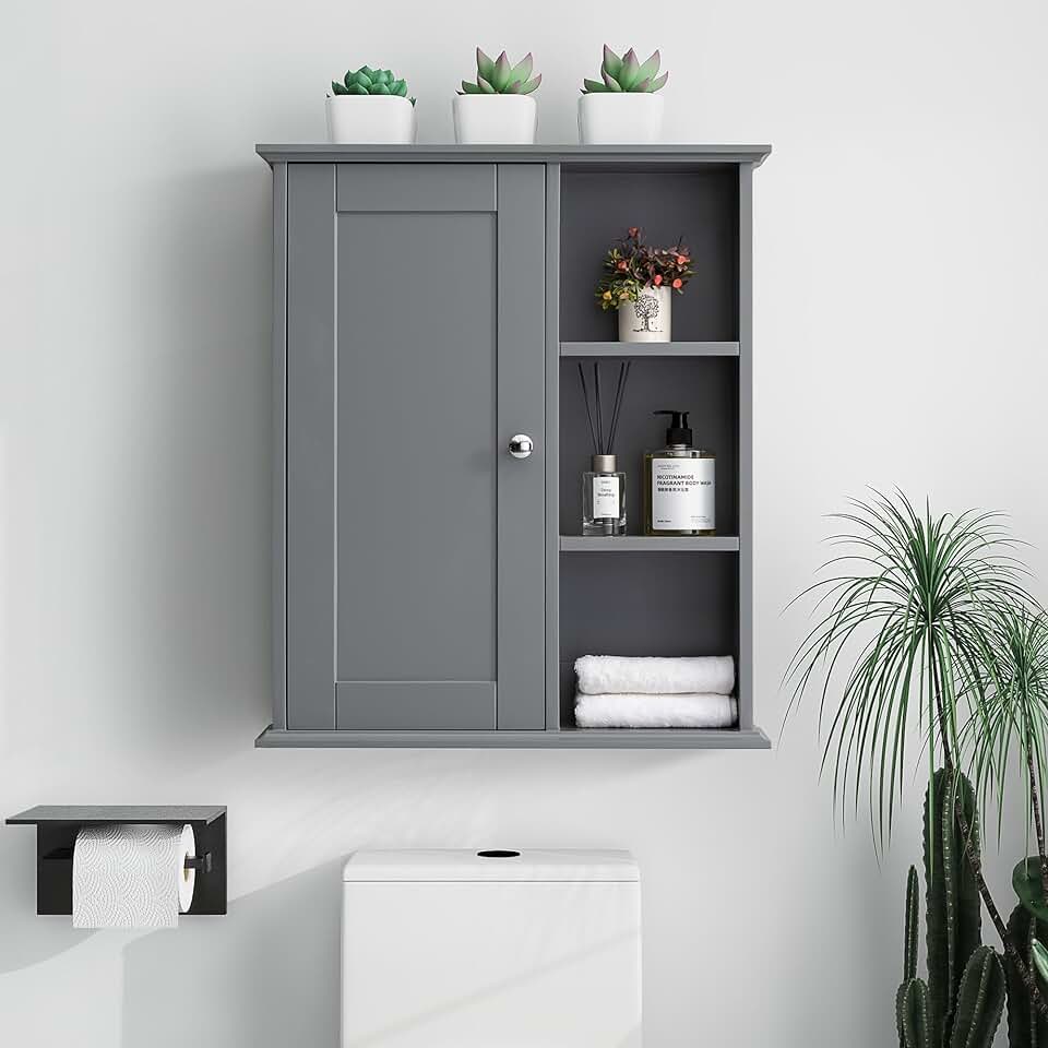 Bathroom Wall Cabinet Over The Toilet Storage Cabinet Wall Mounted Storage Cabinet Wooden Medicine Cabinets for Bathroom Laundry Room Kitchen (Grey)